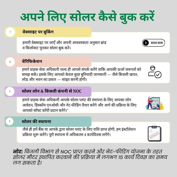Note: Obtaining NOC from the electricity department and installing the solar meter under the net-feeding scheme may take approximately 15 working days.