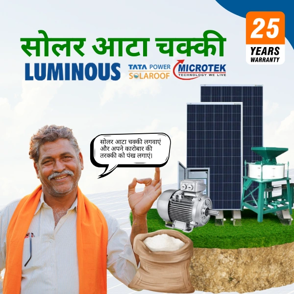 10 HP-20 HP सोलर आटा चक्की 20 HP से 30 HP (क्रॉम्पटन मोटर एवं VFD)-टाटा सोलर, ल्यूमिनस सोलर और माइक्रोटेक सोलर