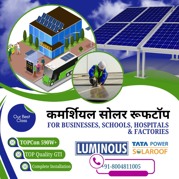 Commercial Solar Rooftop System – High-Efficiency Solar Power for Businesses, Hospitals, Schools, Colleges & Factories | Powered by Tata or Luminous Panels